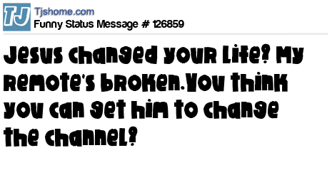 X Jesus changed your life? My remote's broken.You think you can get him to change the channel?