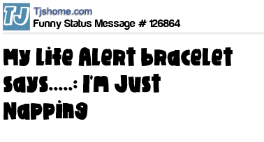 - # 162750 I just ordered a Life Alert bracelet so if I ever get a life I'll be notified immediately.