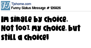 - # 109582 I'm single by choice. Not MY choice. But it's still a choice