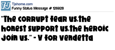 X says ''The corrupt fear us,the honest support us,the heroic join us.'' - V for vendetta