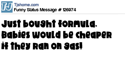 X Just bought formula. Babies would be cheaper if they ran on gas!