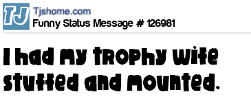 - # 170332 "But would a trophy wife do this?", she said as she changed my car oil