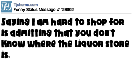X says Saying I am hard to shop for is admitting that you don't know where the liquor store is.