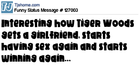 X interesting how Tiger Woods gets a girlfriend, starts having sex again and starts winning again...