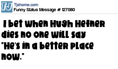 X I bet when Hugh Hefner dies no one will say "He's in a better place now."
