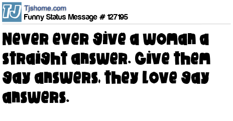 - # 100836 Never give a woman a straight answer. Give them gay answers, they love gay answers.