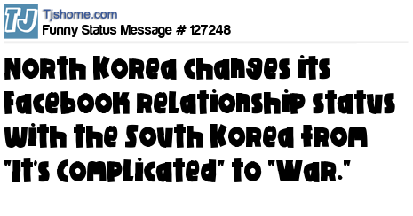 X North Korea changes its Facebook relationship status with the South Korea from "It's Complicated" to "War."
