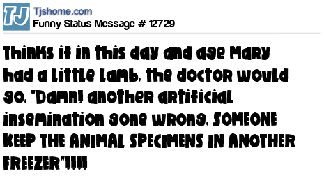X thinks if in this day and age Mary had a little lamb, the doctor would go, "Damn! another artificial insemination gone wrong, SOMEONE KEEP THE ANIMAL SPECIMENS IN ANOTHER FREEZER"!!!!