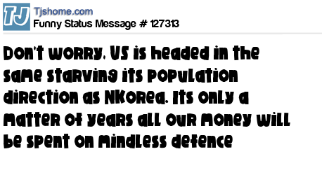 X says Don't worry, US is headed in the same starving its population direction as NKorea. Its only a matter of years all our money will be spent on mindless defence