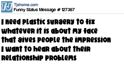 X says I need plastic surgery to fix whatever it is about my face that gives people the impression I want to hear about their relationship problems