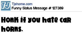 - # 24703 Bumper stickers I'd like to give out: I BRAKE FOR NO REASON / MY OTHER SIGNAL IS OFF / HONK IF YOU HATE WAITING AT GREEN LIGHTS