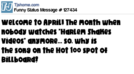 X is Welcome to April! The month when nobody watches "Harlem Shakes Videos" anymore... so, why is the song on the Hot 100 spot of Billboard?