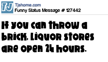 - # 83743 Liquor stores are open 24/7 when you have a brick.