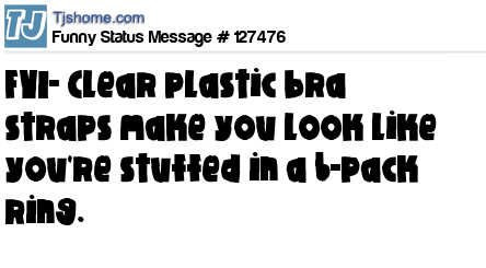 - # 136189 Ladies, clear plastic bra straps make some of you look like you're stuffed in a 6-pack ring.