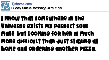 X says I know that somewhere in the Universe exists my perfect soul mate, but looking for her is much more difficult than just staying at home and ordering another pizza.