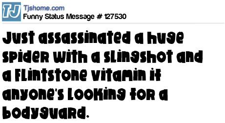 X says Just assassinated a huge spider with a slingshot and a Flintstone vitamin if anyone's looking for a bodyguard.