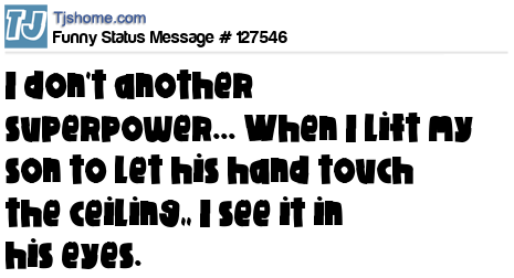 X I don't another superpower... When I lift my son to let his hand touch the ceiling,, I see it in his eyes.