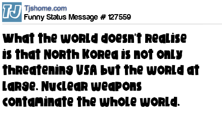 X says What the world doesn't realise is that North Korea is not only threatening USA but the world at large. Nuclear weapons contaminate the whole world.