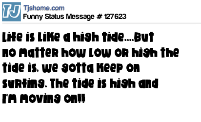 X says Life is like a high tide....But no matter how low or high the tide is, we gotta keep on surfing. The tide is high and I'm moving on!!