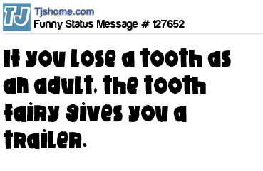 X says If you lose a tooth as an adult, the tooth fairy gives you a trailer.