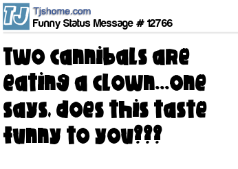 X two cannibals are eating a clown...one says, does this taste funny to you???