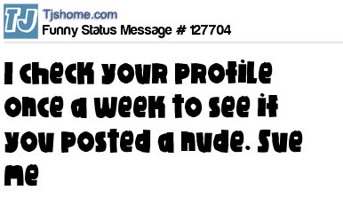 X says I check your profile once a week to see if you posted a nude. Sue me