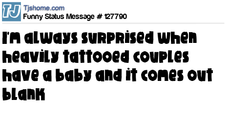 - # 195812 I am always surprised when heavily tattooed couples have a baby and it comes out blank.
