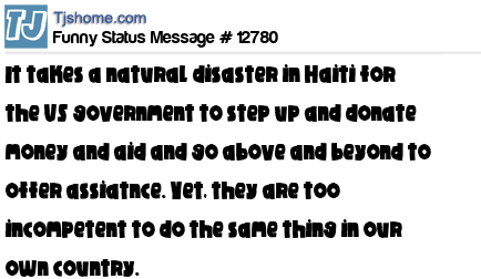 X It takes a natural disaster in Haiti for the US government to step up and donate money and aid and go above and beyond to offer assiatnce. Yet, they are too incompetent to do the same thing in our own country.