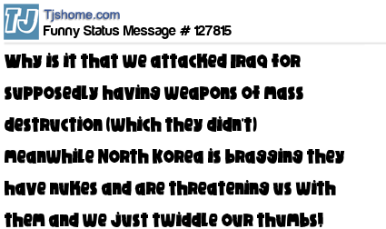 Because North Korea is like that four year old kid that you see that says they are going to karate chop you til you die. He means it, but you know that he couldn't even karate chop a fart out of you.