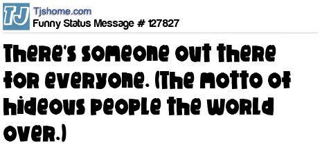 X There's someone out there for everyone. (The motto of hideous people the world over.)