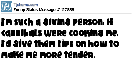 X says I'm such a giving person; if cannibals were cooking me, I'd give them tips on how to make me more tender.
