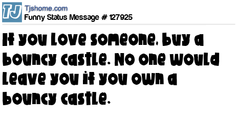 X says If you love someone, buy a bouncy castle. No one would leave you if you own a bouncy castle.