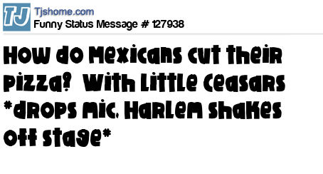 - # 133045 How do Mexicans cut their pizza?..... With Little Caesars .... ***drops mic, Harlem shakes off stage***