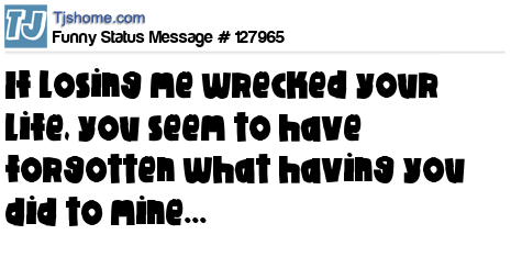 X says If losing me wrecked your life, you seem to have forgotten what having you did to mine...