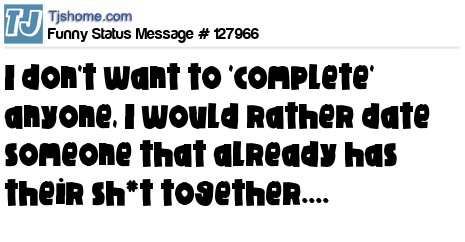 X says I don't want to 'complete' anyone, I would rather date someone that already has their sh*t together....
