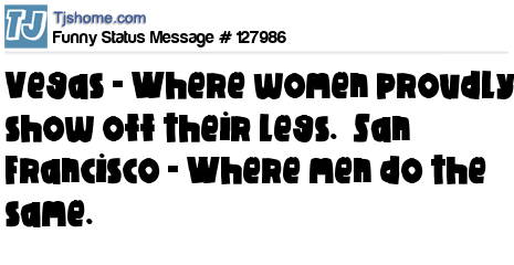 X says Vegas - Where women proudly show off their legs. San Francisco - Where men do the same.