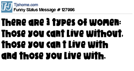 X says There are 3 types of women: Those you cant live without, those you can’t live with and those you live with.