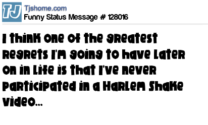 X  I think one of the greatest regrets I'm going to have later on in life is that I've never participated in a Harlem Shake video...