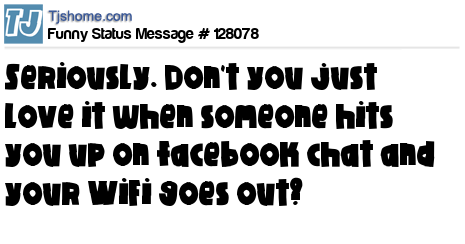 X Seriously. Don't you just love it when someone hits you up on facebook chat and your WiFi goes out?