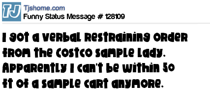 X is I got a verbal restraining order from the Costco sample lady. Apparently I can't be within 50 ft of a sample cart anymore.