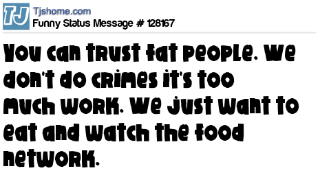 X says You can trust fat people. We don't do crimes it's too much work. We just want to eat and watch the food network.