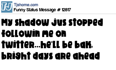 X  my shadow jus stopped followin me on twitter...he'll be bak, bright days are ahead