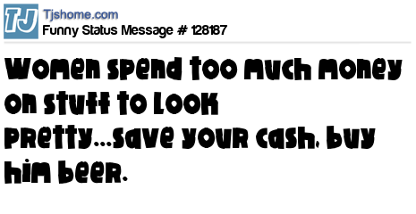 - # 20774 Some Women say they spend alot of money on makeup to make them look pretty, they also say we spend alot of money on beer but what they dont know is that its also to make them look pretty.