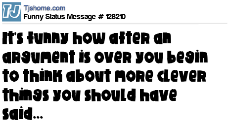 X is It's funny how after an argument is over you begin to think about more clever things you should have said...