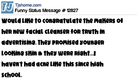 X would like to congratulate the makers of her new facial cleanser for truth in advertising. They promised younger looking skin & they were right...I haven't had acne like this since high school.