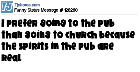 X I prefer going to the pub than going to church because the spirits in the pub are real