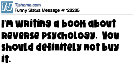 - # 165260 I'm writing a book about reverse psychology.. Please don't buy it!!