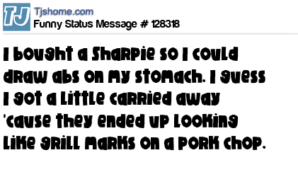 X I bought a Sharpie so I could draw abs on my stomach. I guess I got a little carried away 'cause they ended up looking like grill marks on a pork chop.