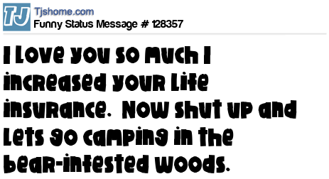 - # 128282 I love you so much I increased your life insurance. Now shut up and drink your poison.