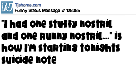 X is "I had one stuffy nostril and one runny nostril..." is how I'm starting tonights suicide note